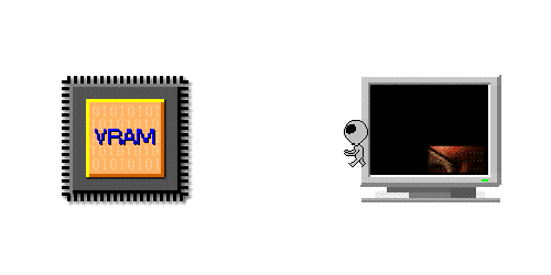 監視器之小廝每隔依小段時間、譬如 90 分之一秒, 就到 VRAM 裡面拿一批畫面,拿回來以後就顯示在螢幕上。 但是那小廝可能一次沒辦法拿一整個螢幕的畫面, 他可能一次只拿一部份,所以螢幕上的畫面每次只有一部份被更新了。 但是因為小廝跑得很快、譬如每 90 分之一秒就更新一部份畫面, 因為人類的眼睛有視覺暫留現象,所以看起來就是一個穩定的畫面了。